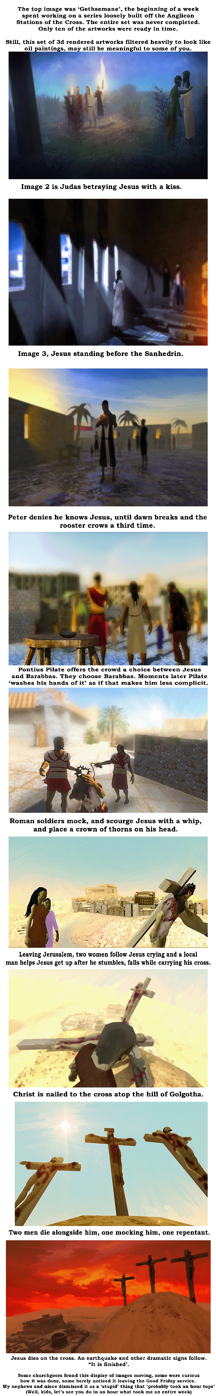The display was posted on Maundy Thursday and Good Friday at St. Stephen's in Sewickley, PA leading into Easter 2024.